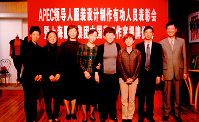 2001年上海APEC會議,當與會各國首腦穿著的“新唐裝”亮相時,贏得一片喝彩。這批新唐裝就是上服集團研制的杰作。會后,設計師團隊受到國家領導人高度贊揚,上海市政府外事辦授予上服集團“特殊貢獻獎”,該項目之后還榮獲中國紡織工業協會科技進步二等獎、上海市技術發明三等獎。